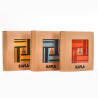 The KAPLA Book and Colours set contains 40 planks in two colours, as well as an art book with original construction models especially adapted to suit the colours in the box.