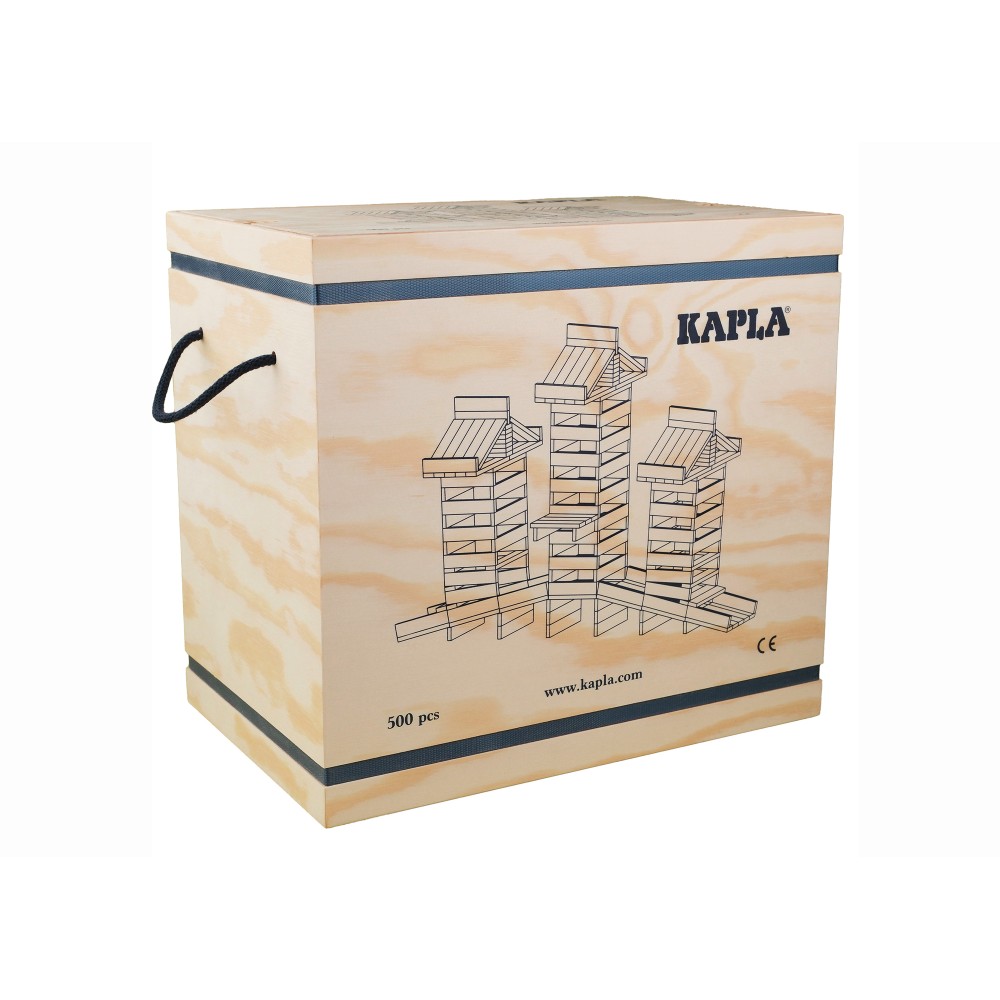 The KAPLA 500 Pack is a wooden construction toy designed to support both children and adults in their creative projects. Its elegant and sturdy wooden box makes it easy to store the planks and keep them close at hand.